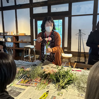 まずは上天草産のカスミソウやトルコキキョウなど、色鮮やかな花々を使ったミニブーケ作りを実施。参加者の大人も子どもも、一つひとつの花を丁寧に選びながら、自分だけのブーケを完成させました。